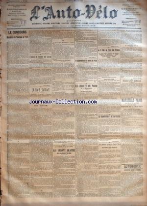 LE CONCOURS DE BICYCLETTES DE TOURISME DU T.C.F. PAR GEO LEFEVRE - L'OPINION DE FOURNIER SUR LAWSON PAR GEO LEFEVRE - ALLO ! ALLO ! - UN REVE - LE TELEPHONISTE - AU VELODROME DU PARC DES PRINCES - ILS SERONT QUATRE PAR GEO LEFEVRE - LE CHAMPIONNAT DU MONDE DE BOXE PAR H. S. - LE CIRCUIT DU NORD A L'ALCOOL PAR GEORGES PRADE - LE 8 MAI AU PARC DES PRINCES - LE CHAMPIONNAT DE LA PRESSE PAR GEO LEFEVRE - ECHOS DES PISTES - AU PARC DES PRINCES - A BUFFALO PAR ALPHONSE BAUGE - CASQUE D'OR LUTTEUSE PAR L. MANAUD - MARSEILLE-PARIS PAR SAINT-VALLIER - AUTOMOBILE - L'ASSOCIATION GENERALE AUTOMOBILE.