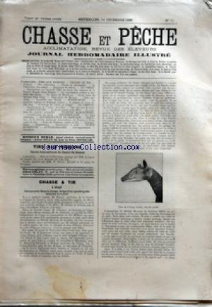 CHASSE ET PECHE [No 11] du 14/12/1902 - TIRS AUX PIGEONS - CERCLE INTERNATIONAL DU CASINO DE NAMUR - CHASSE ET TIR - L'OKAPI - DECOUVERTE DANS LE CONGO BELGE D'UN QUADRUPEDE INCONNU A CE JOUR - M. SCLATER - M. JOHNSTON - M. ERIKSSON - LE LIEUTENANT LEONI
