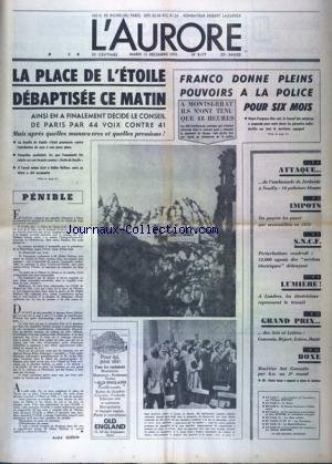 LA PLACE DE L ETOILE DEBAPTISEE CE MATIN PENIBLE - PAR ANDRE GUERIN FRANCO DONNE PLEINS POUVOIRS A LA POLICE POUR SIX MOIS GRAND PRIX DES ARTS ET LETTRES - GENEVOIX - BEJART- ESTEVE - DASTE BOXE - BOUTTIER BAT GONZALES PAR KO AU 3E ROUND - SKI - PATRICK RUSSEL A REMPORTE LE SLALOM DE SESTRIERES